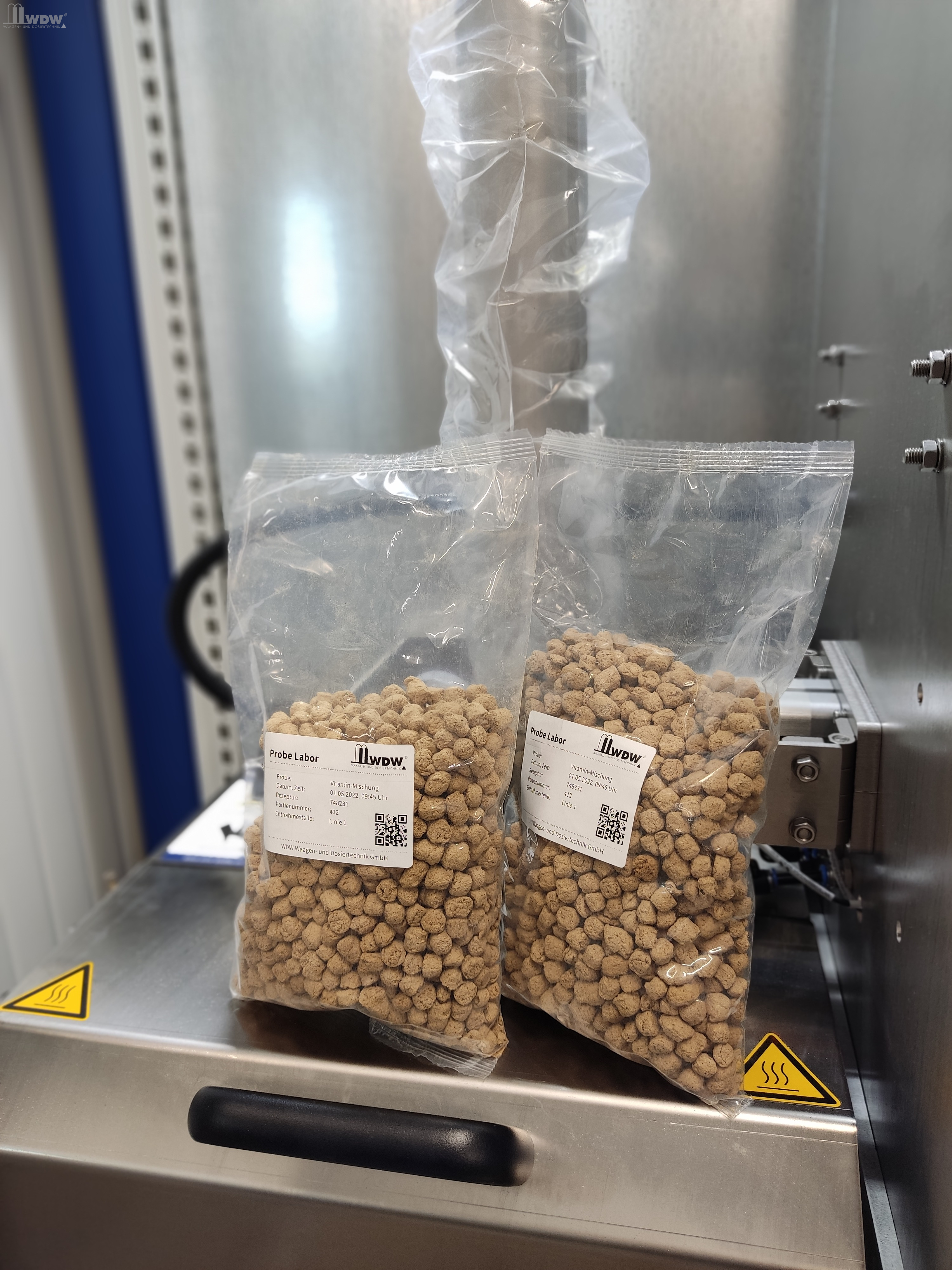 Die Probenabfüllanlage WDW EasyCollect wird zur vollautomatischen Abfüllung, Verschließung und Kennzeichnung von Proben und Rückstellmustern in der Lebensmittel-, Futtermittel- und Chemieindustrie eingesetzt. Die Abfüllanlage kann für mehlige und körnige Schüttgüter verwendet werden. Die Größe der Probenbeutel kann individuell festgelegt werden.